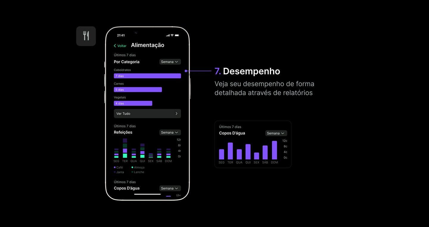 Após a publicação do app na App Store, coletamos resultados e feedbacks e percebemos que o aplicativo realmente ajudava as pessoas a terem uma vida mais equilibrada. Identificamos oportunidades de melhoria, principalmente em UX Writing, para tornar os textos mais claros e inclusivos, e também no processo de desenvolvimento, já que a documentação ficou pronta apenas no final, deixando pouco tempo para ajustes pelos desenvolvedores.