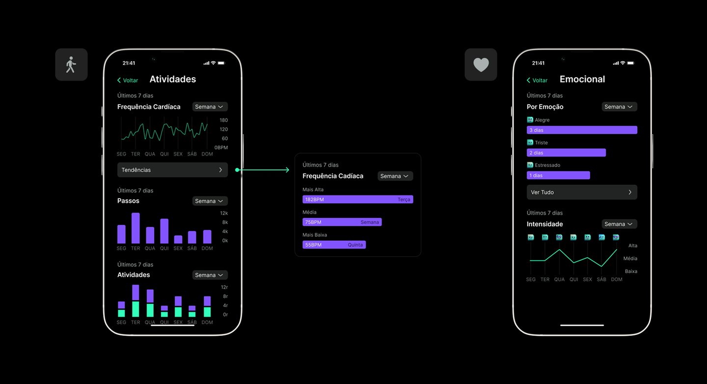 A solução definida foi o desenvolvimento de um aplicativo que monitora e analisa a rotina do usuário por meio do Apple Watch, apresentando visualmente dados sobre saúde emocional, atividade física, alimentação e sono, ajudando o usuário a identificar desequilíbrios e entender melhor sua saúde.