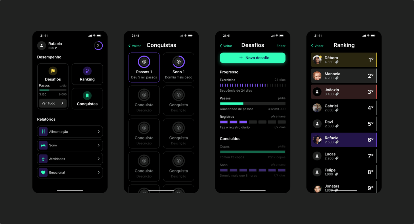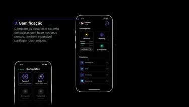Níveis: os usuários sobem de nível ao acumular pontos, com uma progressão balanceada para não ser nem fácil e entediante nem difícil e frustrante. Esse sistema reforça o senso de progresso e evolução contínua.