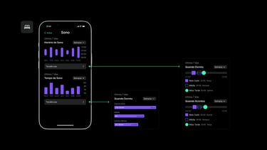 Foi criado um mapa do site para organizar a estrutura do aplicativo. Devido às limitações e ao uso rápido do Apple Watch, o app foi dividido: o relógio ficou responsável pela coleta de dados e visualização simples, enquanto relatórios mais completos ficaram disponíveis no iOS, simplificando a arquitetura no Apple Watch.